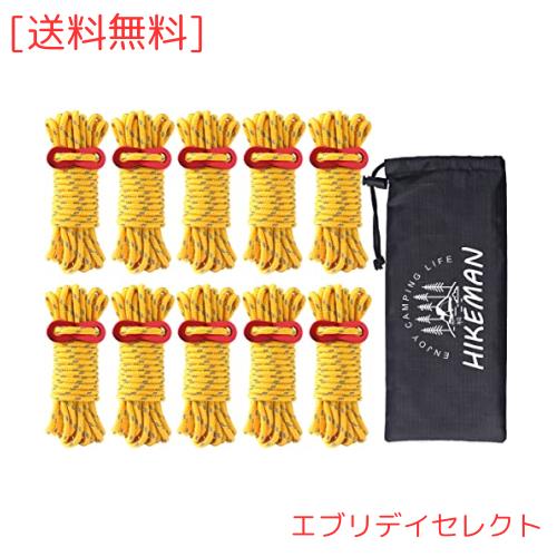 ガイロープ パラコード ロープ テントロープ ガイライン タープロープ 反射 6本 セット 4mm * 4m キャンプ アウトドア アルミニウム 自在
