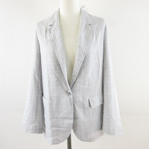 【中古】ユニクロ UNIQLO ライトシャツジャケット チェック 長袖 グレー M *A662 レディース