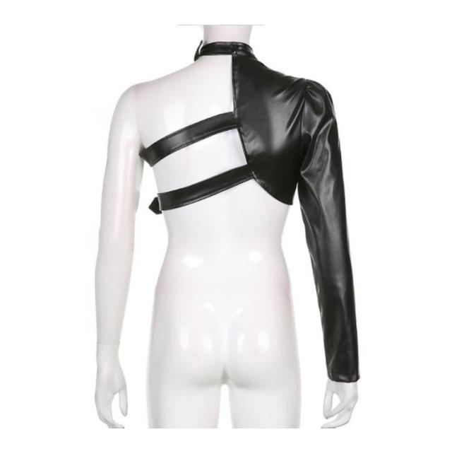 アームウォーマー ダンストップス ヒップホップ ダンス衣装 ステージ衣装 PU革 ダンストップス スリーブ レザー レディース トップス ワンショルダー 黒 ブラック ブラウン 舞台衣装 イベント 送料無料 ストリート B系 アウター
