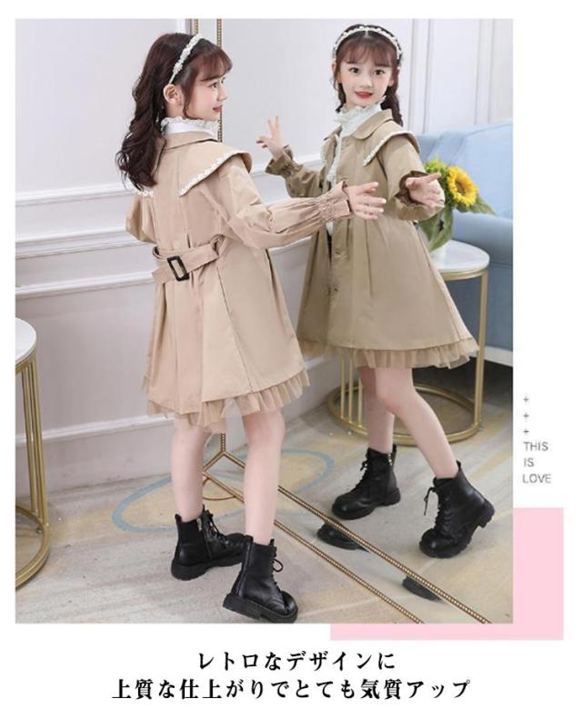 ジュニア服 フォーマル キッズ 130 トレンチコート 韓国子供服 女児 秋 トレンチコート ロング丈 コート コート 子供コート 子供服 春秋物 可愛い アウター スプリングコート 子供用 ロングコート オシャレ 110 120 女の子 140 150 160