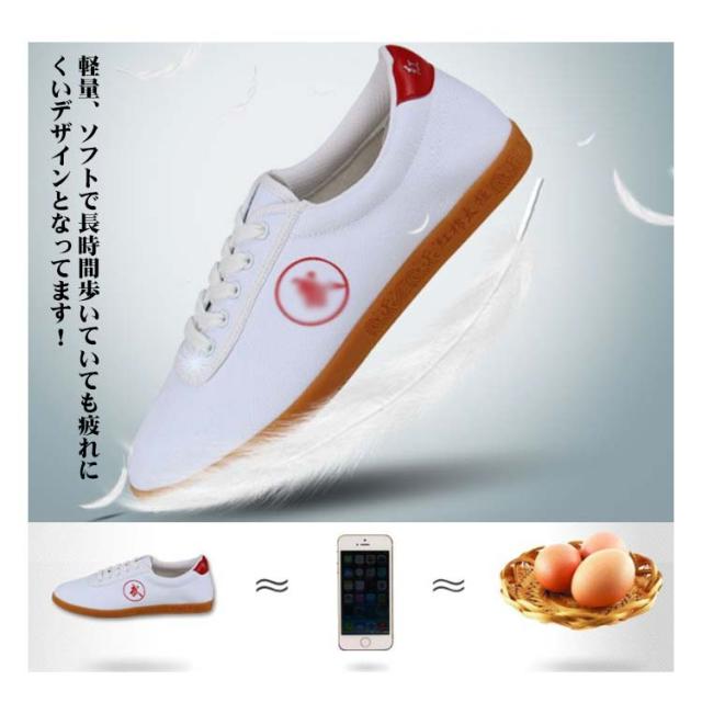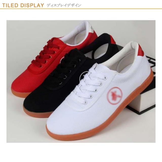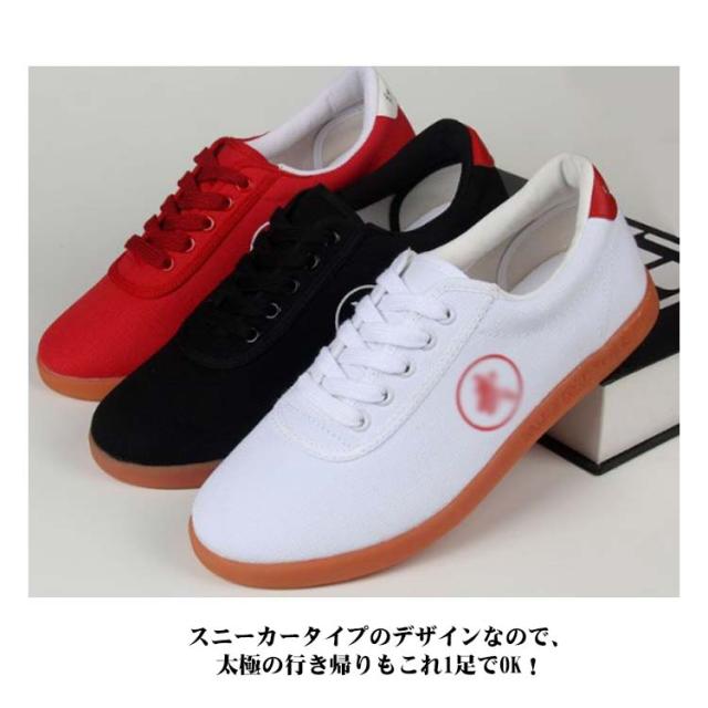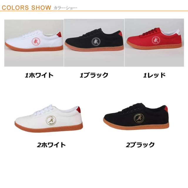 | 19-28cm!太極拳、武術シューズ、カンフーシューズ。 軽量、ソフトで長時間歩いていても疲れにくいデザインとなってます! スニーカータイプのデザインなので、太極の行き帰りもこれ1足でOK! | |