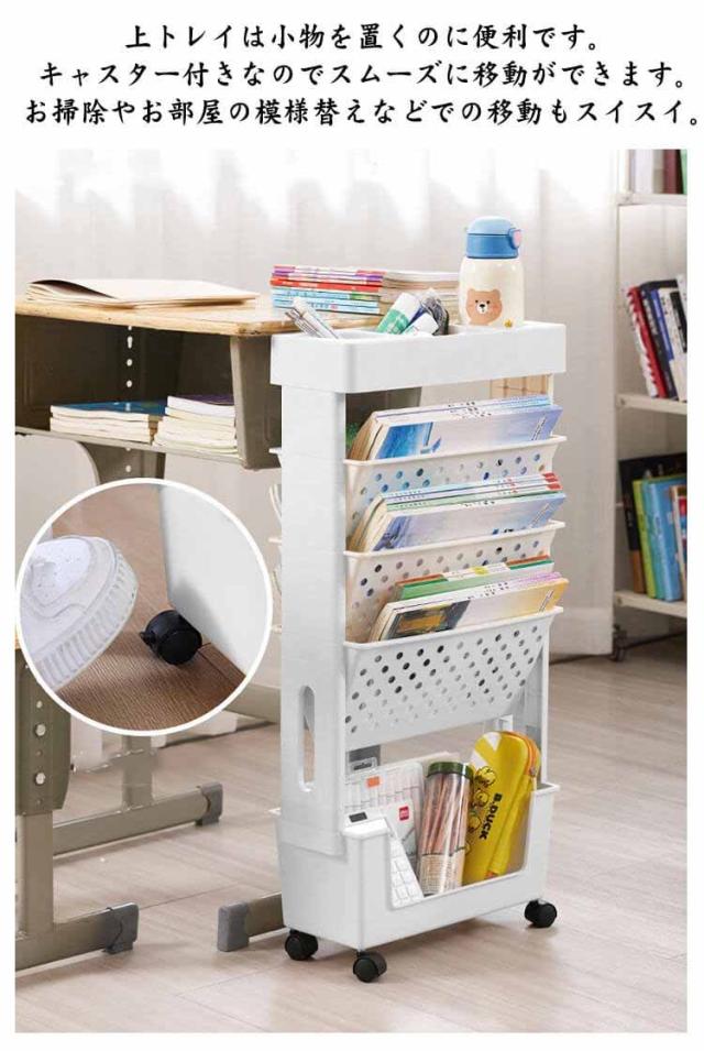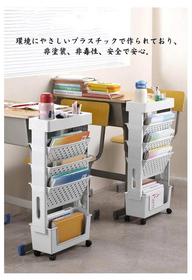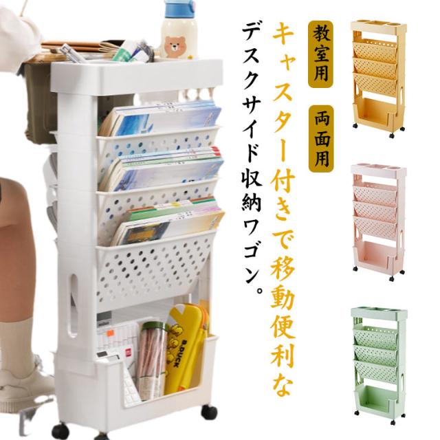 収納ワゴン 5段 キャスター付き ワゴン 収納ラック 両面用 収納ワゴン デスクサイド 本棚 マガジンラック 本立て 収納ボックス ファイル立て 棚 雑誌収納 本収納 教室用