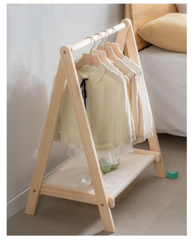 ハンガー 洋服掛け 折りたたみ 子供 幅約63cm ハンガーラック キッズ コートハンガー 木製 キッズハンガーラック 子供服 ラック ハンガーポール ポールハンガー 衣類収納 頑丈 コンパクト 省スペース 収納 子供部屋