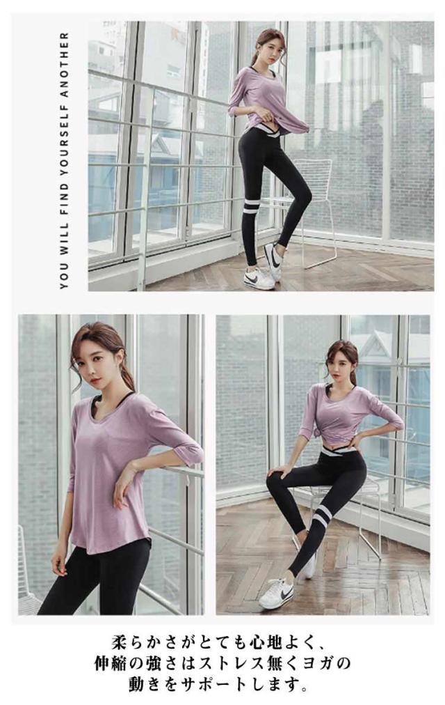| 選べる袖丈!動きやすく軽やかで着心地抜群のヨガウェアトップス さらりとした生地感とバックデザインは通気性の良いメッシュ生地を採用。一枚でサラッと着れて見た目も涼しく魅せる。 着丈は長めになっていますので、お尻周りもしっかりつつんでくれます。 柔らかさがとても心地よく、伸縮の強さはストレス無くヨガの動きをサポートします。 | |