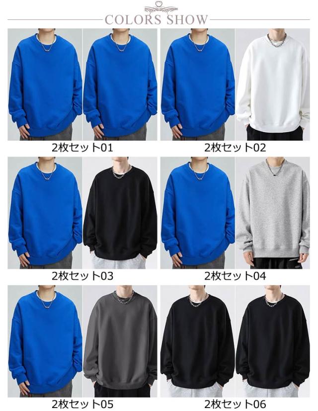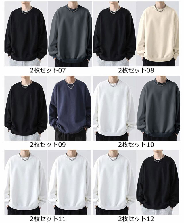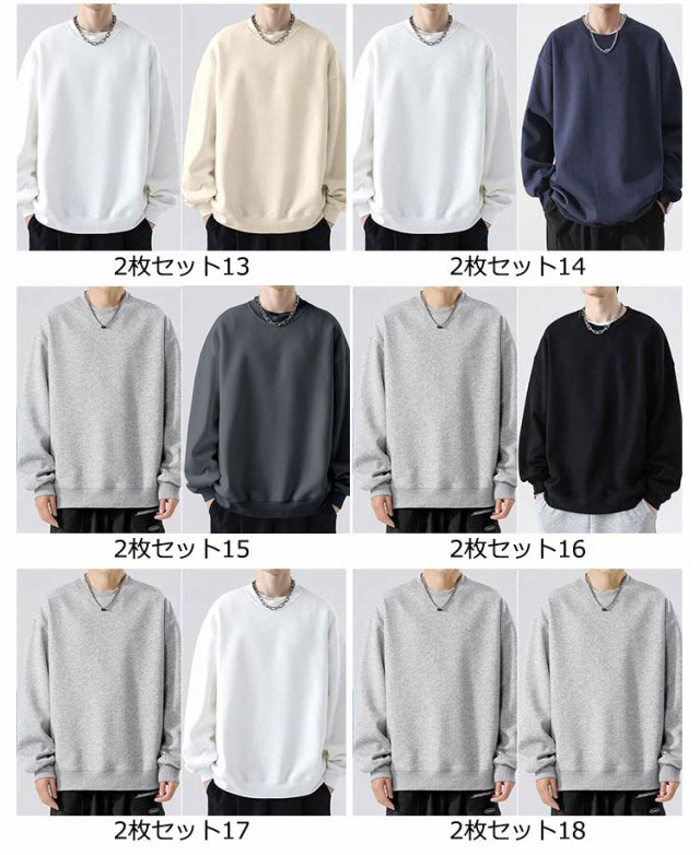 | 2枚セット 裏起毛と起毛無しの2タイプ、年中を通して着用していただけるトレーナーです。 柔らかく肌触りの良い素材で、肌寒い日にも大活躍です。 ゆったりとしたオーセンティックなシルエットは様々な着こなしと合います。 トレンドのビッグシルエットでルーズな着こなしが楽しめるアイテムです。 1枚ではもちろんのことアウターのインナーとしても使えるオススメのトレーナーです。 | |