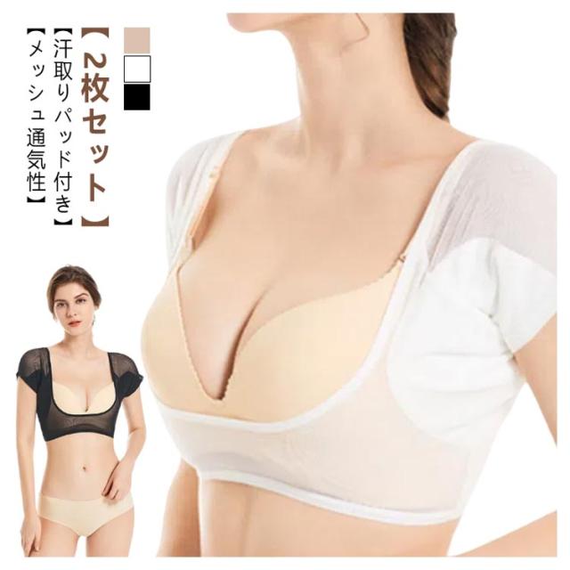 シャツ 汗取りインナー 【2枚セット】汗取りパッド付き 夏 汗対策 対策 汗脇パット インナー 脇汗 汗染み 防止 汗とりインナー メッシュインナー 半袖 レディース 脇汗インナー 汗取り インナー 脇汗 インナー