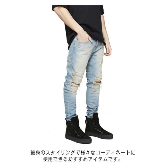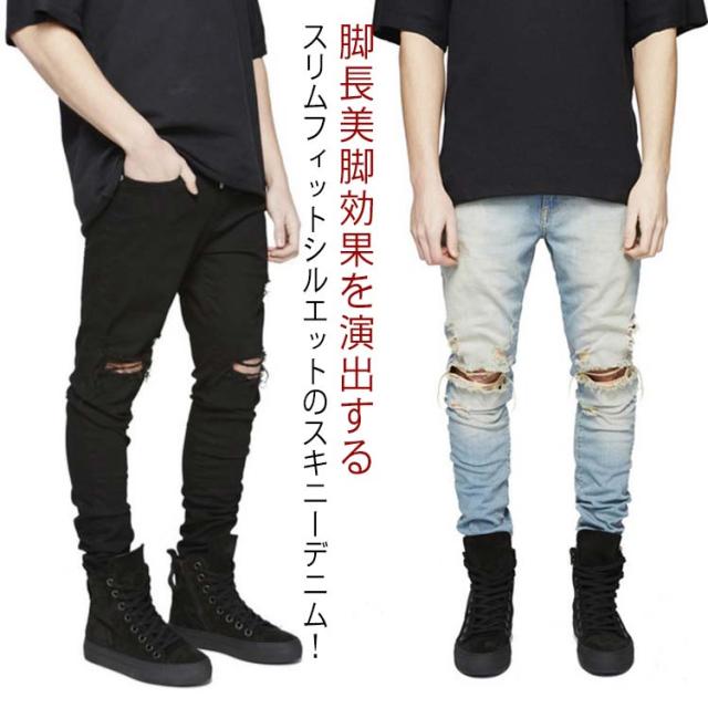 メンズ ダメージジーンズ ストレッチ スキニーデニム スキニーデニム 脚長 大きいサイズ 細身 美脚 ダメージデニム ジーパン スキニーパンツ 春夏 秋冬