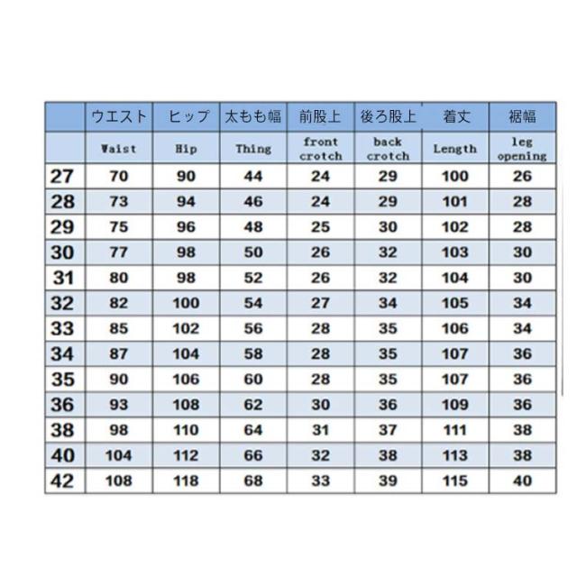 | サイズ | 28 29 30 31 32 33 34 35 36 38 40 42 |