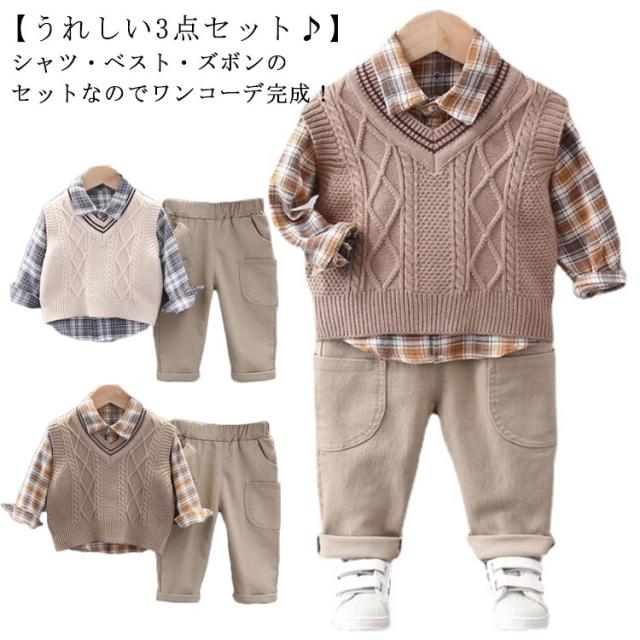 ベビー フォーマル セットアップ ベスト 3点セット 長袖 男の子 誕生日 入園式 ベビー お宮参り 卒園式 ベビー服 ベスト 子供服 幼児 スーツ 七五三 結婚式 お洒落 上下セット シャツ キッズ 冠婚葬祭 パンツ ズボン 80 90 100 110
