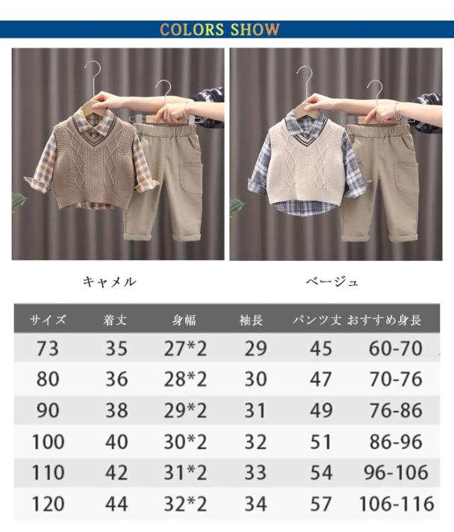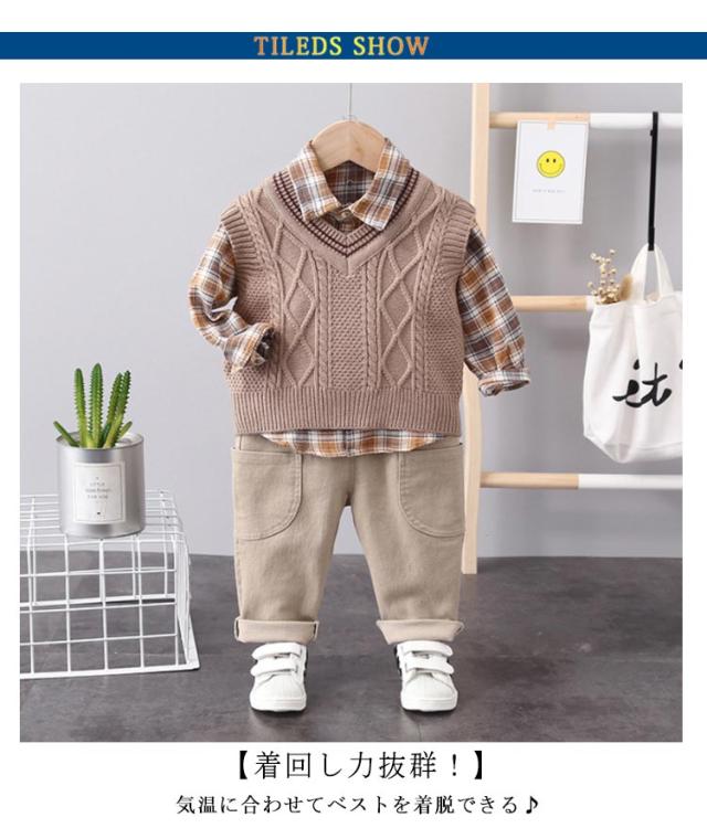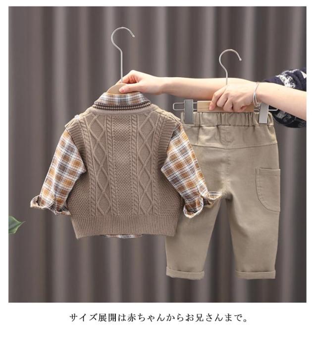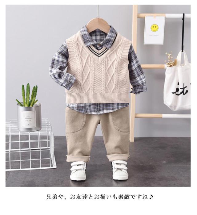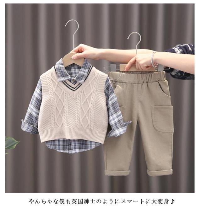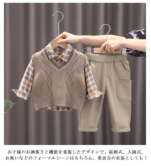 | 【うれしい3点セット♪】 シャツ・ベスト・ズボンのセットなのでワンコーデ完成! 【着回し力抜群!】 気温に合わせてベストを着脱できる♪ お子様のお洒落さと機能を重視したデザインで、結婚式、入園式、 お祝いなどのフォーマルシーンはもちろん、発表会の衣装としても! やんちゃな僕も英国紳士のようにスマートに大変身♪ サイズ展開は赤ちゃんからお兄さんまで。 兄弟や、お友達とお揃いも素敵ですね♪ | |