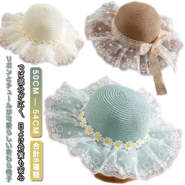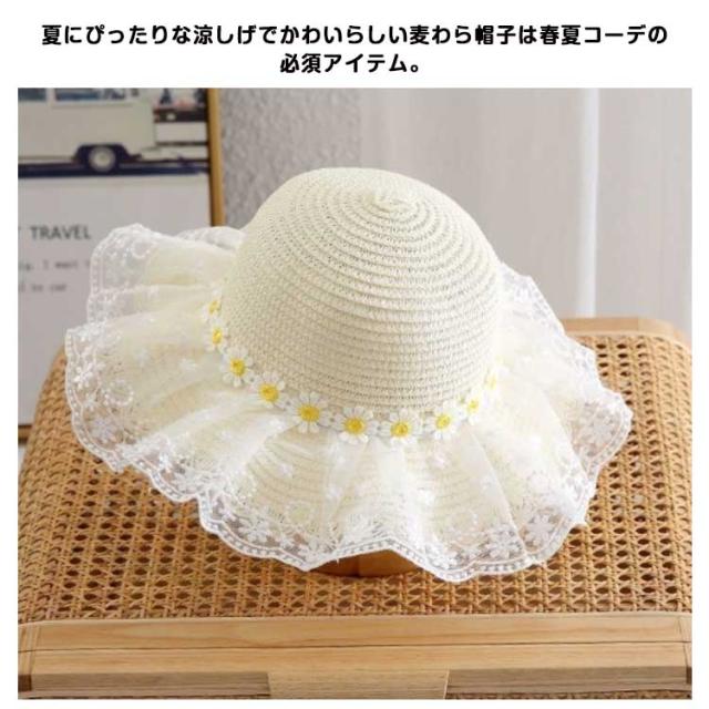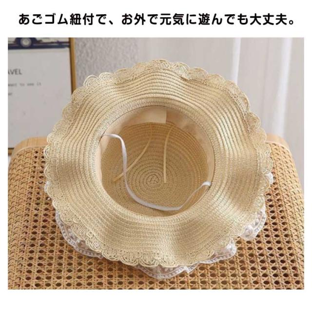 女の子 ハット ストローハット 麦わらハット 熱中症対策 リボン レース 帽子 あご紐付 麦わら帽子 夏 つば広 春 かわいい 日除け 遮光 紫外線対策 uvカット 通気性 日焼け防止 麦わら帽子 ペーパーハット 日除け帽子 旅行 海 ビーチ キッズ