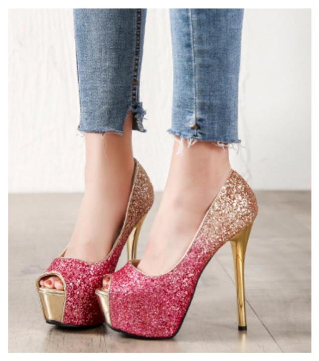 | 12cm/14cm ゴージャスなグラデーションオープントゥ厚底サンダルです。 足首をスッキリ見せて、「こなれ感」を演出できる☆ キラキラのラメ素材でゴージャス度数200%! ドレスが映える一品です! 厚底&ハイヒールですので着用時はご注意下さいませ。背がとても高くなります。 | |