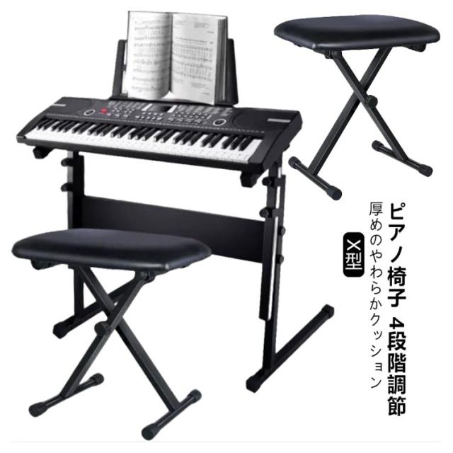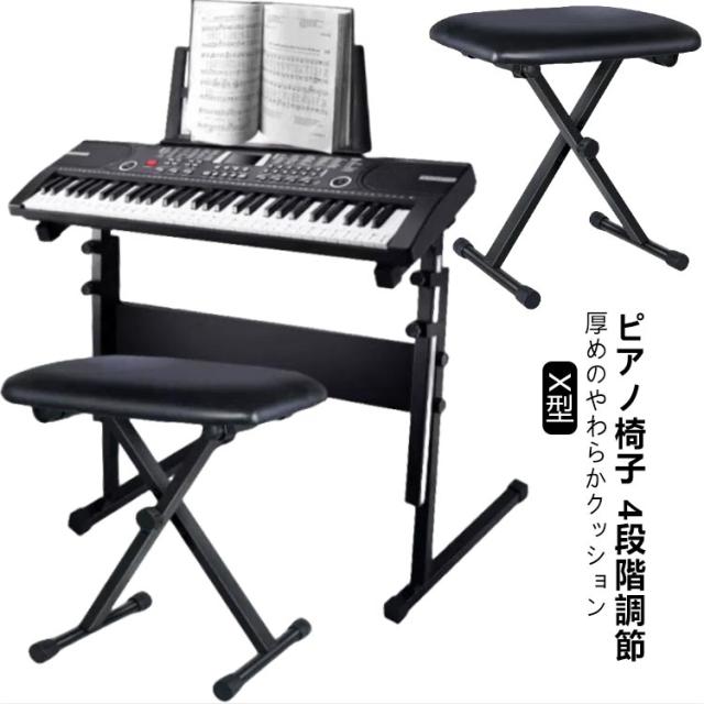 キーボードベンチ キーボード 軽量 折りたたみ ピアノ椅子 ピアノ椅子 折り畳み 高さ調節 ベンチ ハイスツール X型 滑り止め ぐらつき防止機能搭載 4段階高低調節 ピアノ椅子 各種メーカー対応 イス オルガン 子供 大人 収納 スリム チェアー