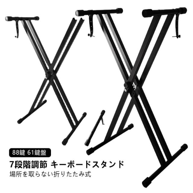 61鍵盤 電子ピアノスタンド ダブルスタンド 練習 x型 ピアノスタンド 高さ7段調整 折りたたみ キーボード 88鍵 キーボードスタンド X型 ヤマハ適用 軽量 安定 キーボード台 電子ピアノ 台 子供 楽器 キーボードスタンド ライブ 大人 電子キーボード