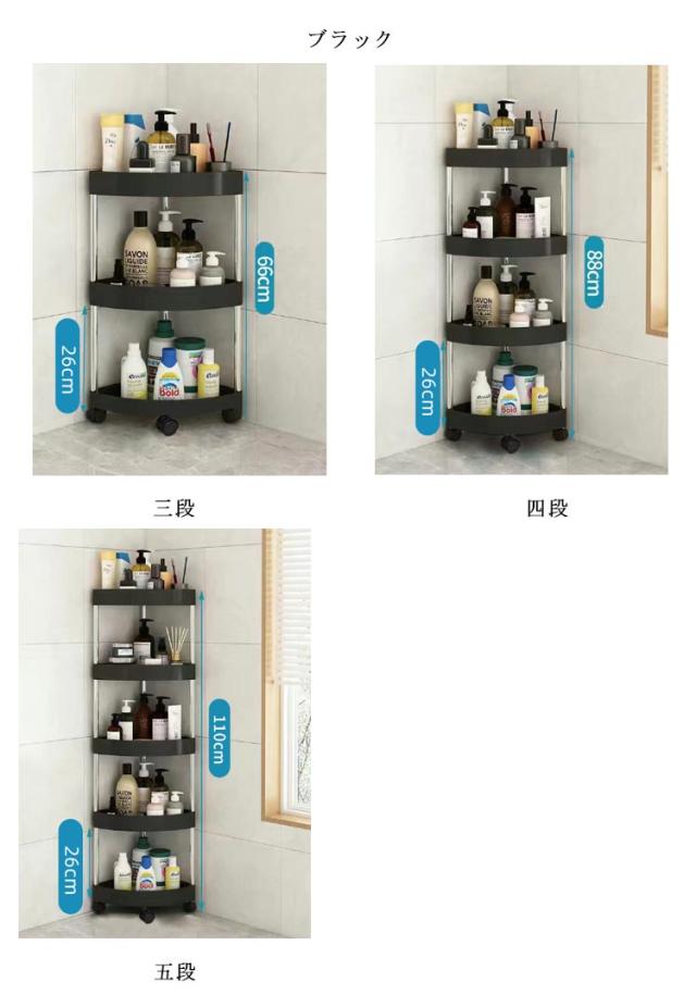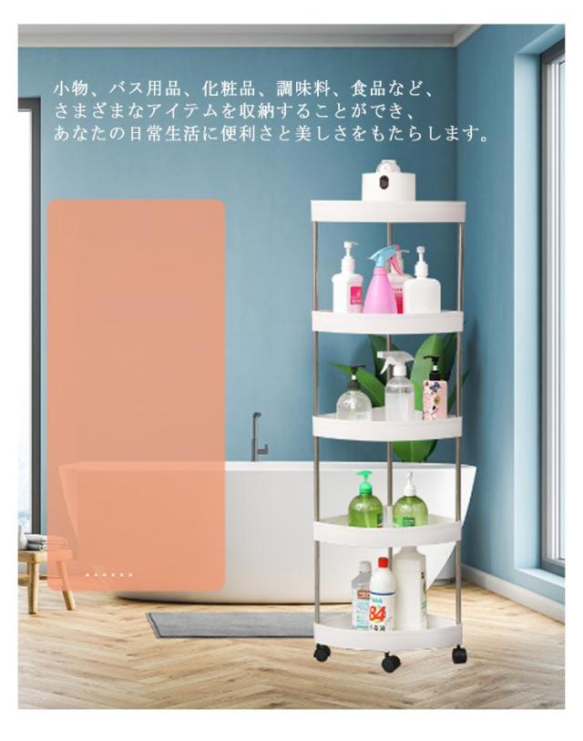 | 省スペース!キャスター付き4段/5段コーナーラック。水切り可能穴付きなので、水回りにも使えます。 ワゴンのバスケットは、丈夫なPP素材で作られており、パイプはステンレス鋼製で錆びにくく、全体的に防水性があり、耐久性があります。 キャスターは360°自由に回転ことができます。移動が便利で、清掃も簡単です。 このワゴンは簡単に取り付けられます。他の工具は必要ありませんし、1人でも約10分で完全に取り付けることができます。 実用的かつおしゃれなデザインは,浴室、トイレ、キッチン、部屋、居間、洗濯室コーナーなど、さまざまな場所での使用に非常に適しています。小物、バス用品、化粧品、調味料、食品など、さまざまなアイテムを収納することができ、あなたの日常生活に便利さと美しさをもたらします。このワゴンは、さまざまなシーンで活躍するアイテムです。 | |