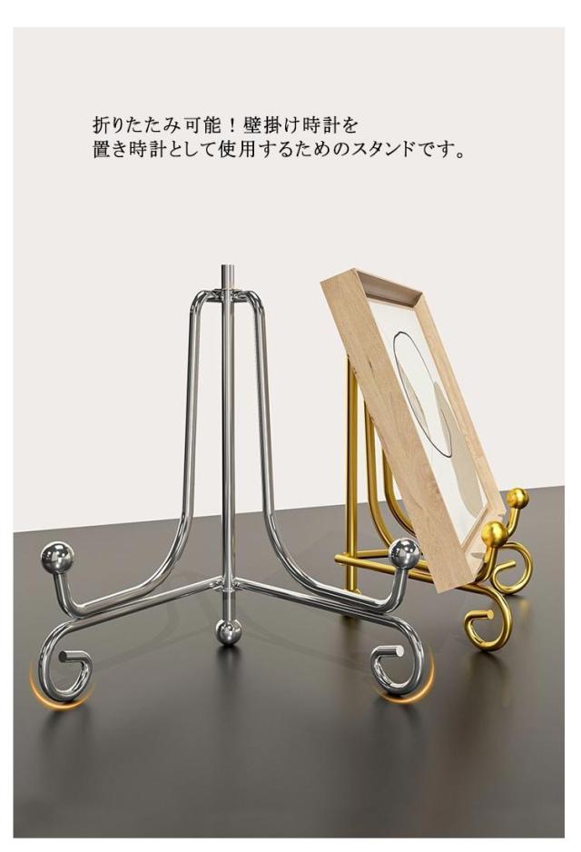 時計 置き時計 スタンド 掛け時計 スタンド 送料無料 クロックスタンド 時計用スタンド プレートスタンド アイアン 折りたたみ 飾り台 額絵 皿たて 皿立て 写真立て 本立て 絵本 送料無料 展示 玄関 キッチン トイレ 三角形 おしゃれ 高級感