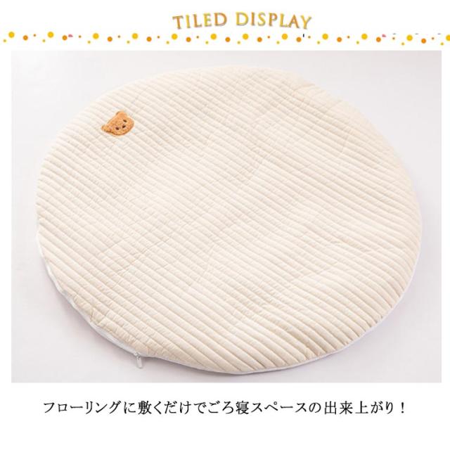 | ベビー サニーマット!フローリングに敷くだけでごろ寝スペースの出来上がり! 厚くて柔らかくて、赤ちゃんの夜寝用マットとしておすすめです。遊び用マレイマットにもできます。 また、お子様のお遊びマットとして、おむつ換えやごろ寝、ママのラグマットとしても使えます。 お子様の成長記録の記念撮影や話題の「寝相アート」の背景にもびったりのかわいいデザインのマットです。 | |