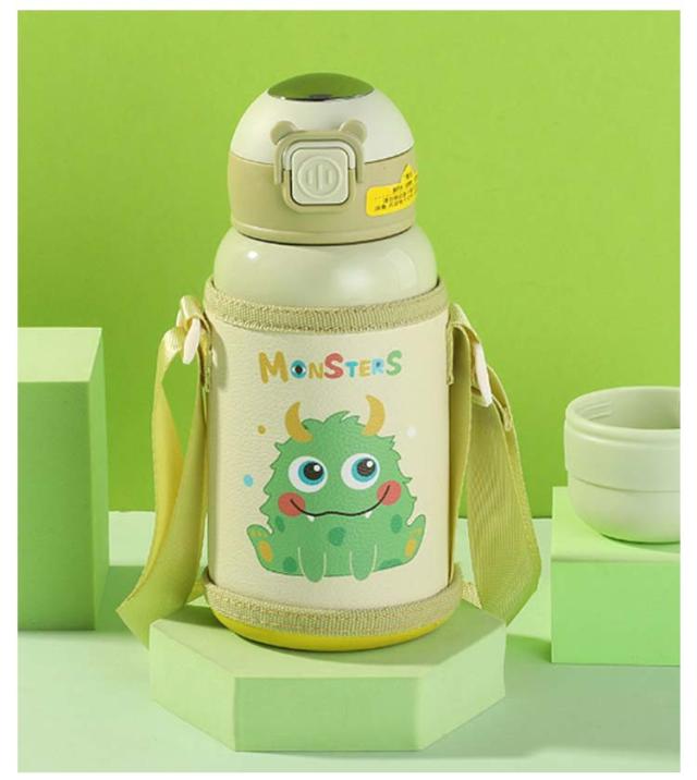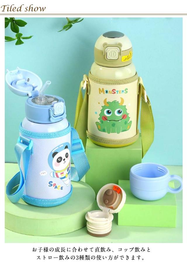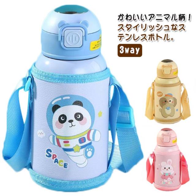 かわいい ストロー 子ども コップ ストロー 500ml ステンレス カバー キッズ 子供用 肩紐 水筒 子供 アニマル柄 マグボトル 3way 水筒 直飲み こども 魔法瓶 ワンタッチ キッズ かわいい 水筒 ステンレスボトル 保温