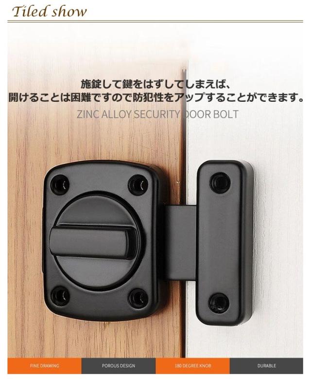 ドアロック 鍵 補助鍵 鍵 内鍵 室内 ドアロック スライド錠 引き戸 回転 引き戸用鍵 後付け用 スライドロック 部屋 引き戸用鍵 回転ボルトラッチ 回転式 ドア 鍵 浴室/部屋/バスルーム用ロック 盗難防止安全ドアロック 防犯