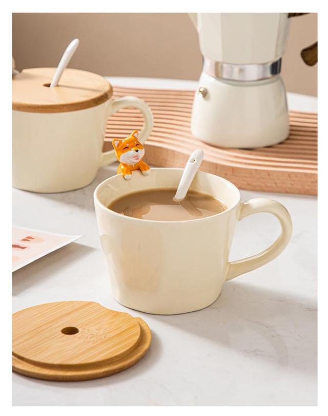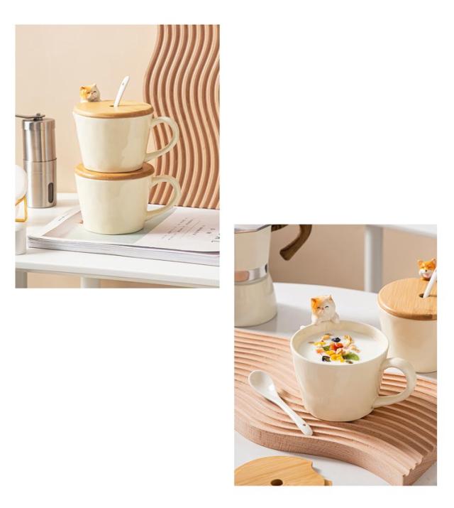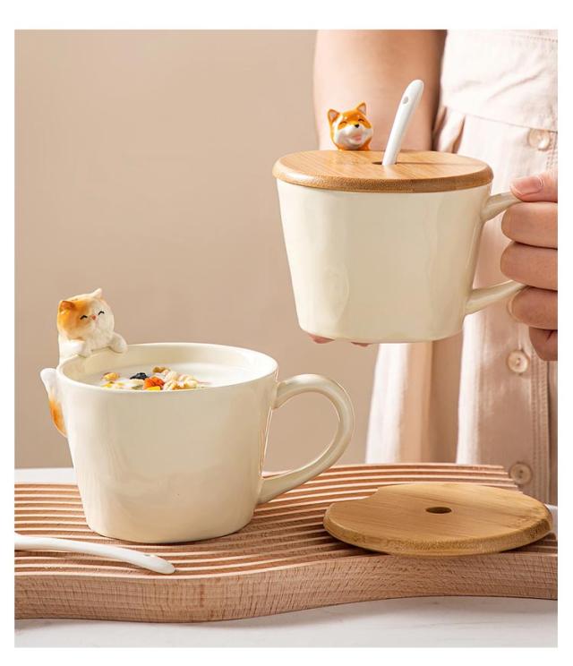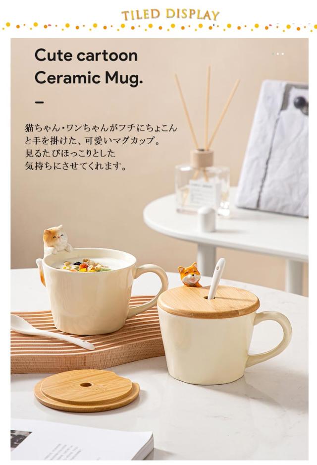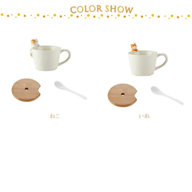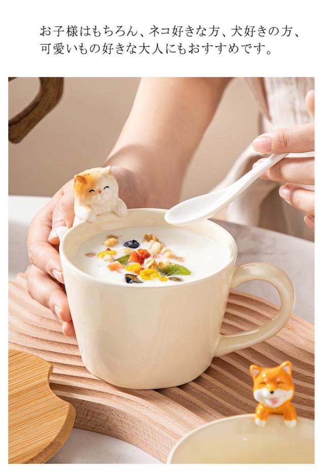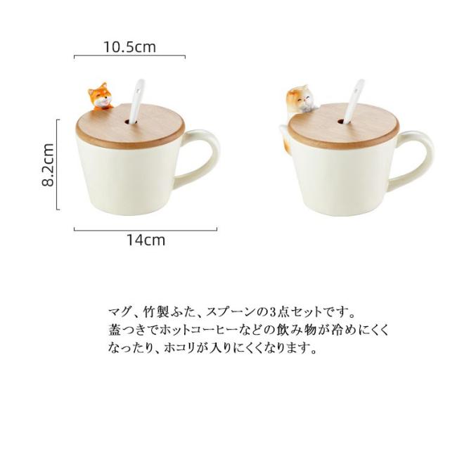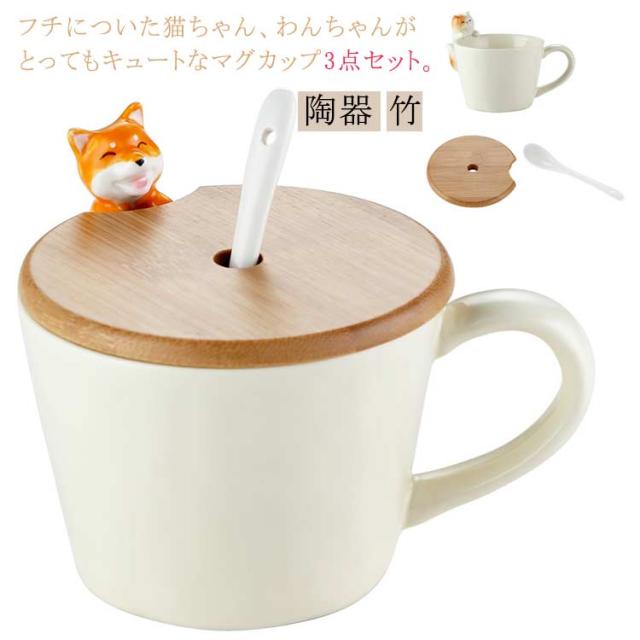 ねこ 犬 猫 3点セット おしゃれ コップ 猫グッズ マグカップ マグ いぬ コーヒーカップ 陶器 軽い ティーカップ 竹製ふた お茶 子供 大人 可愛い 猫 スプーン セット マニュアル 誕生日 ギフト