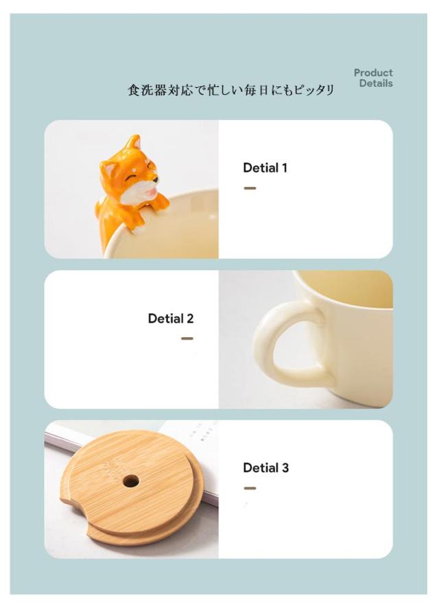 | フチについた猫ちゃん、わんちゃんがとってもキュートなマグカップ3点セット。 猫ちゃん・ワンちゃんがフチにちょこんと手を掛けた、可愛いマグカップ。見るたびほっこりとした気持ちにさせてくれます。 マグ、竹製ふた、スプーンの3点セットです。蓋つきでホットコーヒーなどの飲み物が冷めにくくなったり、ホコリが入りにくくなります。 食洗器対応で忙しい毎日にもピッタリ お子様はもちろん、ネコ好きな方、犬好きの方、可愛いもの好きな大人にもおすすめです。 | |