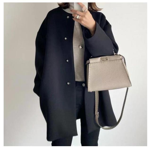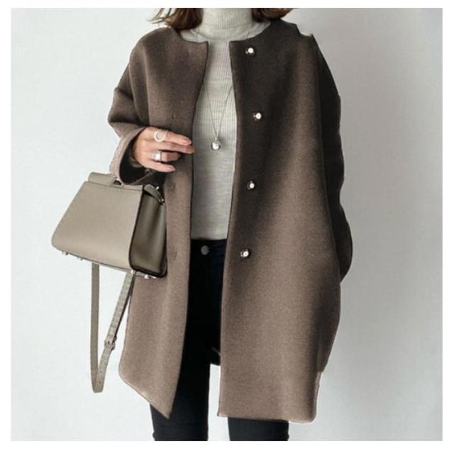 卒業式 ノーカラーコート チェスターコーレディース レディース ノーカラーコート コート ロングコート ノーカラー 黒 コート黒 春 ノーカラー 春秋 厚手 チェスターコート チェスターコー春 春 入学式 入園式 卒園式