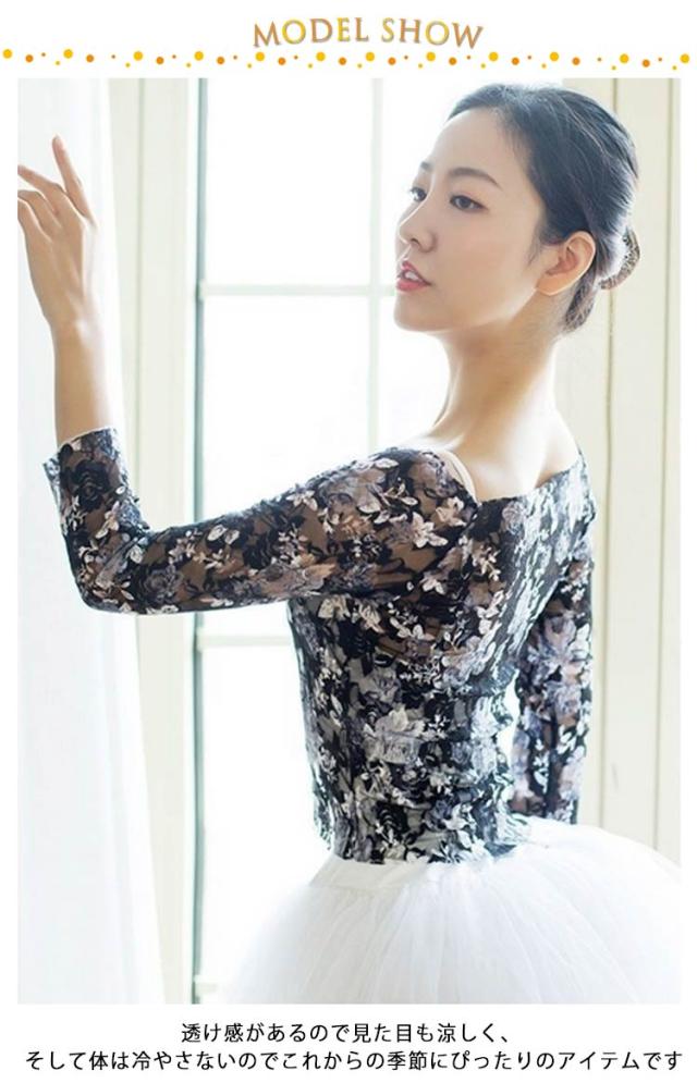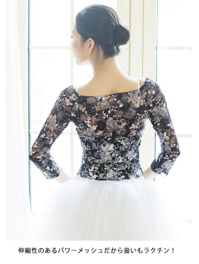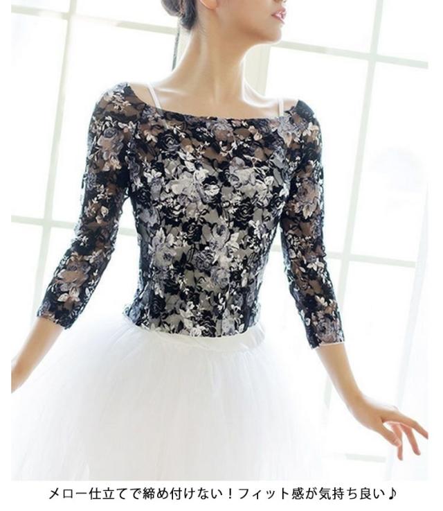 ダンス パワーメッシュ 花柄 チュールネット レディース 七分袖 シースルー トップス 花柄 レッスン 練習着 ストレッチ 伸縮 カバー 伸縮性あり 総柄