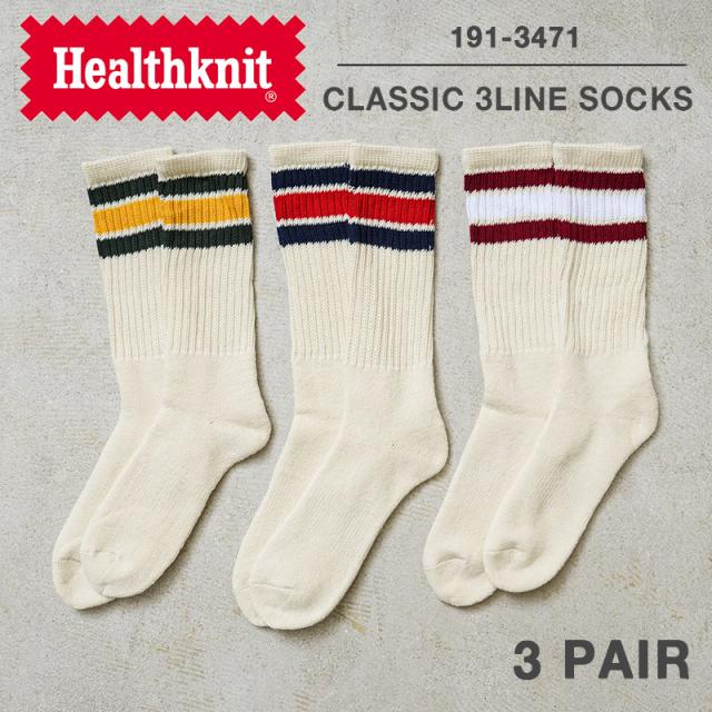 Healthknit ヘルスニット 191-3471 クラシック配色 3本ライン ソックス 3足セット【T】|メンズ 靴下 パック ライン ボーダー スケーターソックス ロング 厚手