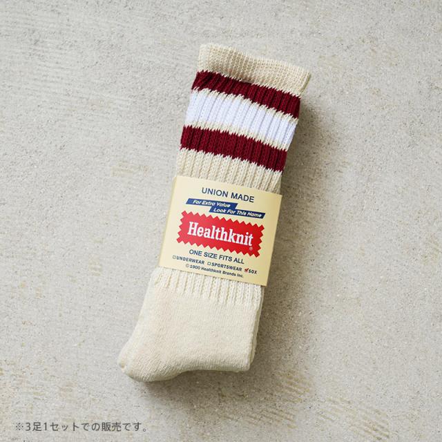 Healthknit ヘルスニット 191-3471 クラシック配色 3本ライン ソックス 3足セットのご紹介です。Healthknit(ヘルスニット)より、生成りのボディーにカラーラインが入った色違い3足セットが登場しました。生地は肌触りの良いソフトな素材感で、伸縮性も良く足にフィットする快適な履き心地。クッション性と吸水性があり、アクティブなシーンにも活躍するアイテムです。パイル仕様になっているので、スニーカーはもちろんブーツに合わせるのもオススメです。