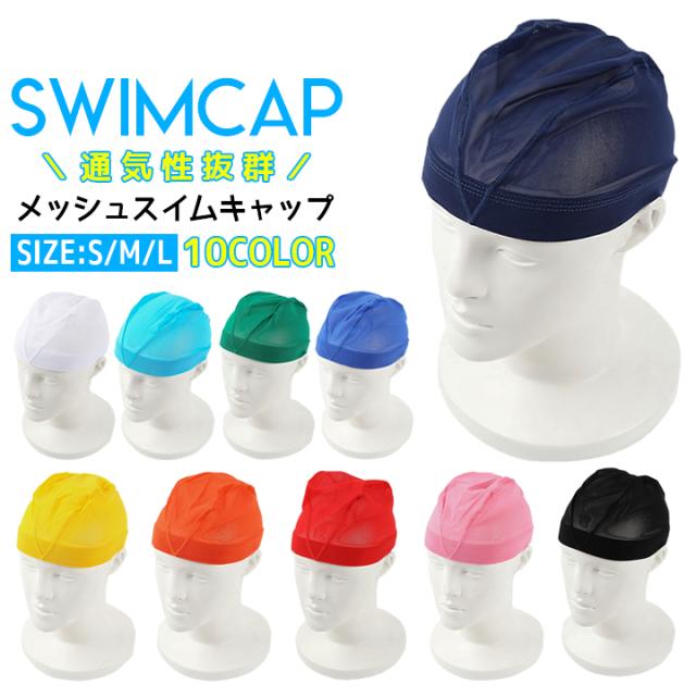 スイムキャップ 水泳帽子 メンズ レディース メッシュ スイミング プール ブラック ホワイト ブルー ネイビー オレンジ レッド [子供 大人用] 送料無料