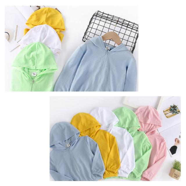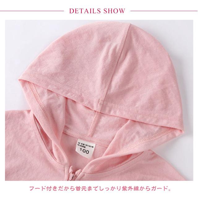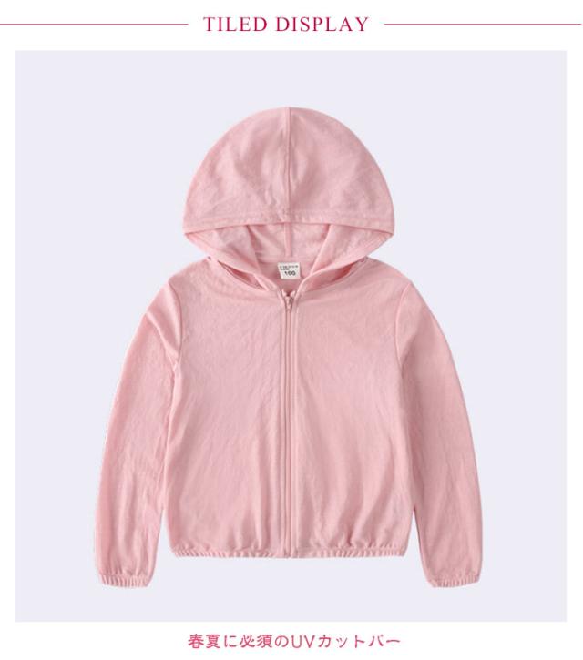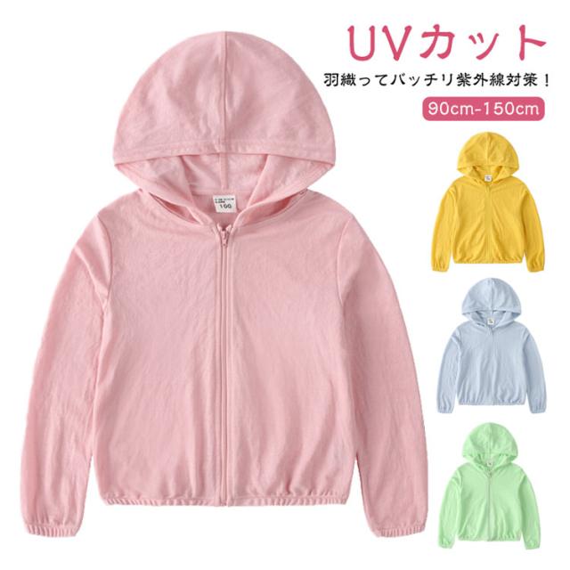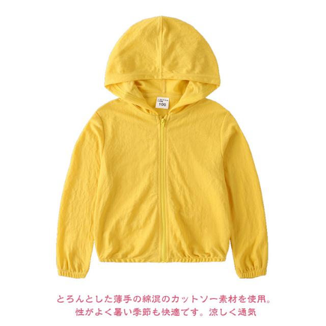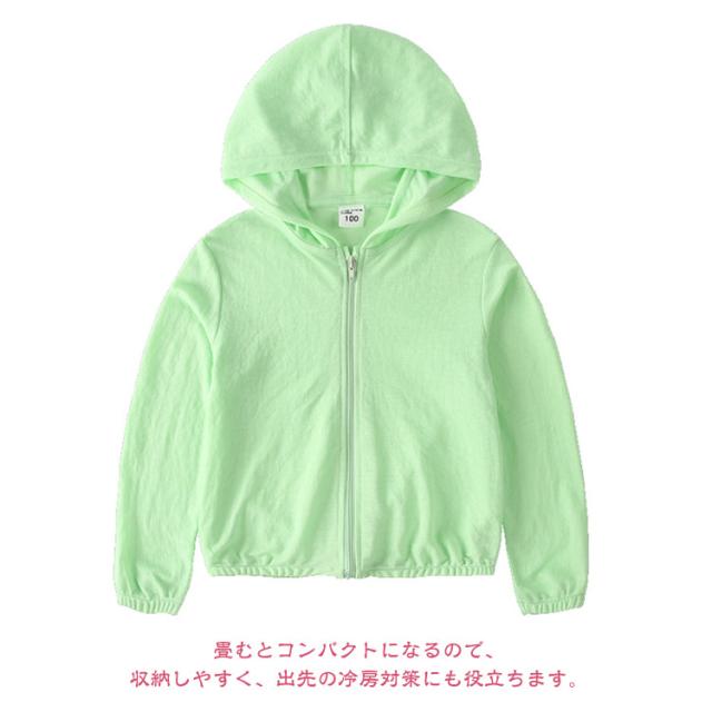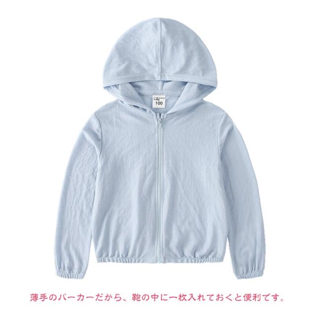 長袖 キッズ UVカット パーカー ジュニア 男の子 トップス 子供 羽織り ジップパーカー カーディガン UVカット 女の子 薄手 綿混 フード付き UV対策 UVケア 紫外線対策 無地 シンプル カジュアル こども服 子ども服
