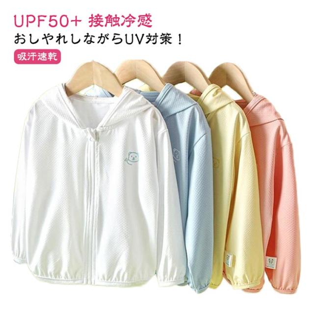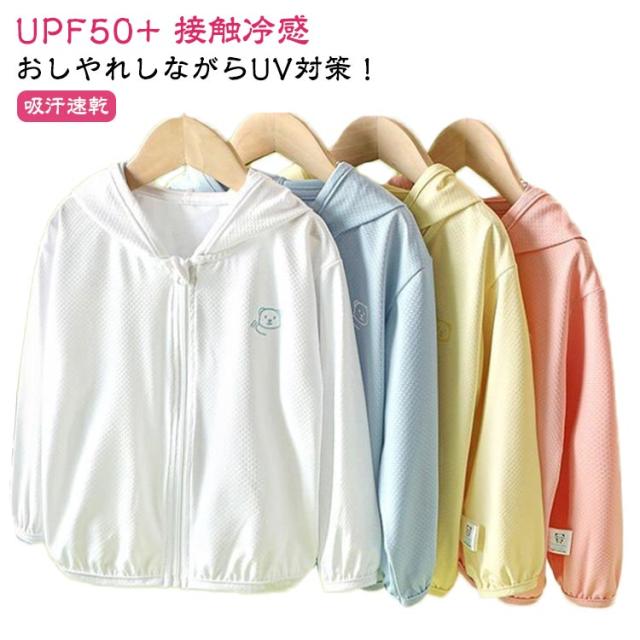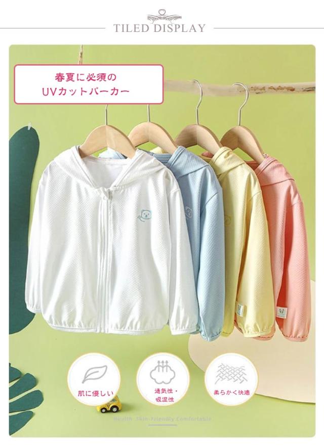 UVカット パーカー 吸汗 薄手 キッズ 接触冷感 UVカット 凉しい 女の子 ジュニア 男の子 ベビー 子供 トップス トレーナー ジップパーカー カーディガン 速乾 羽織り UPF50+ フード付き UV対策 紫外線対策 無地 可愛い