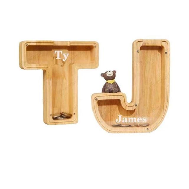 A-Z レター貯金箱 木製 レター貯金箱 木製 アルファベットレター 組み合わせ自由 コインバンク 厚手 子供用貯金箱 貯金箱 コイン