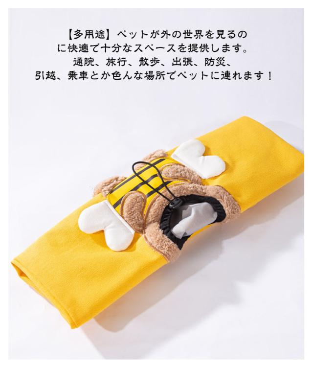 | 【飛び出し防止】顔の見える部分は首回りで調整できるので、首周りのサイズに合わせることで転倒のリスクを軽減できます。 【愛犬・愛猫のハンドバッグ】持ち運びに便利な機能付きペットトートバッグです。安定感だけでなく、大切なペットの移動中も安心・快適に過ごせるよう設計されています。いつでもあなたの犬の世話をしてください。 【穴のデザイン】クリエイティブな蜂、ウサギ、恐竜の形と頭のデザインにより、ペットは頭を伸ばして新鮮な空気を吸うことができます。 首のサイズは調節可能で、さまざまなサイズのほとんどのペットにフィットします。 【多用途】ペットが外の世界を見るのに快適で十分なスペースを提供します。通院、旅行、散歩、出張、防災、引越、乗車とか色んな場所でペットに連れます! 【素材サイズ】ペットキャンバスバッグは高品質のキャンバスとコットン素材できており、通気性があり、耐久性があります、お手入れも乾燥も簡単です。 | |