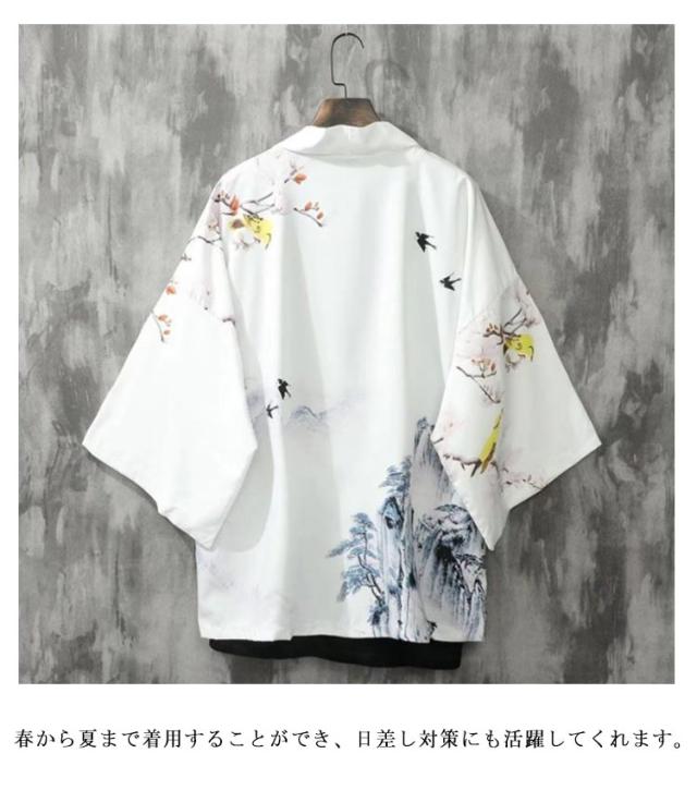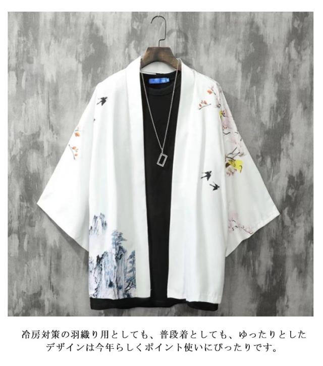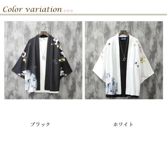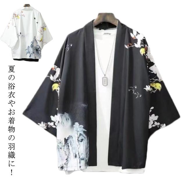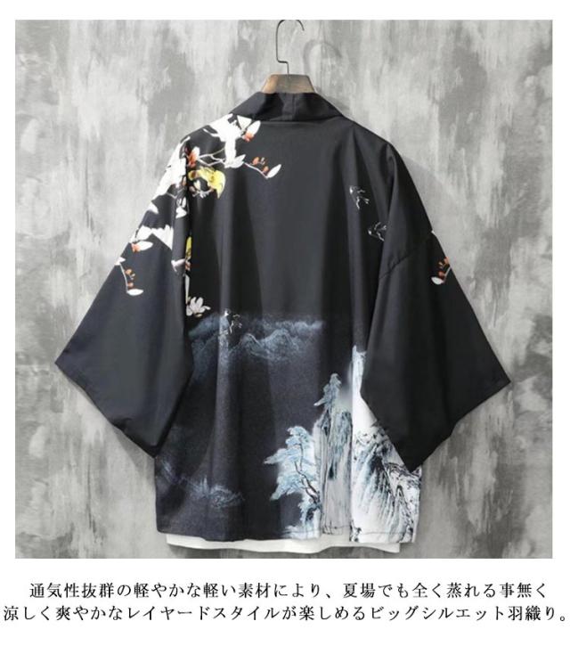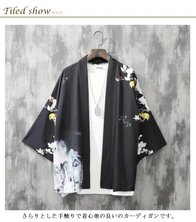 夏用 羽織 カーディガン 花火大会 着物カーディガン 着物 和風 浴衣風 甚平風 メンズ 夏服 七分袖 アウター カーディガン 開襟シャツ 男性用 和式 羽織 おしゃれ 送料無料 ゆったり トップス はおり 鶴柄 総柄 サマーカーディガン 重ね着 オーバーサイズ