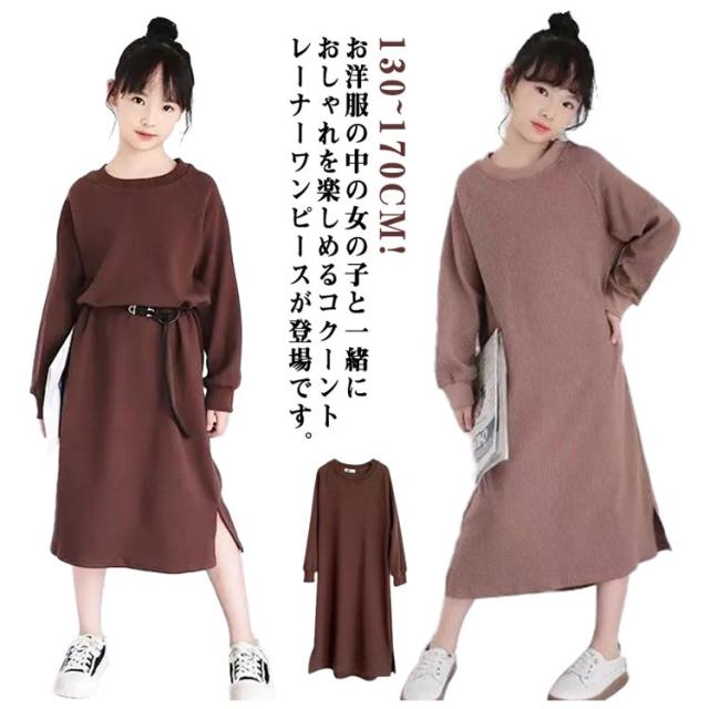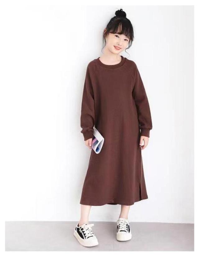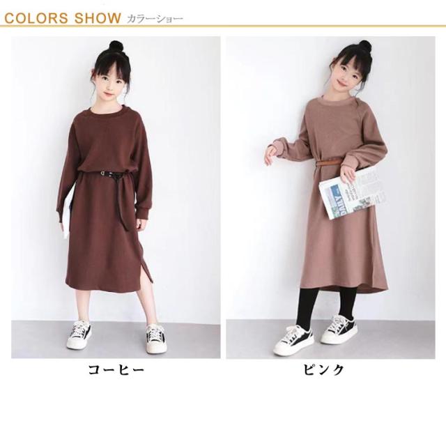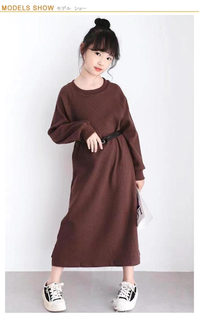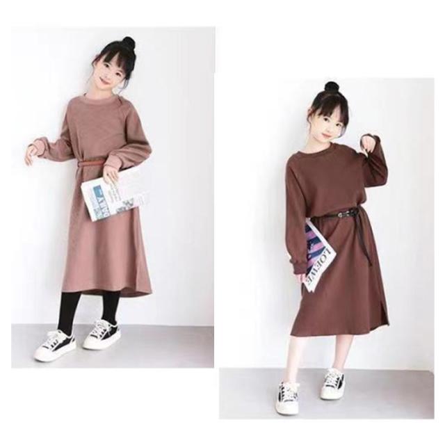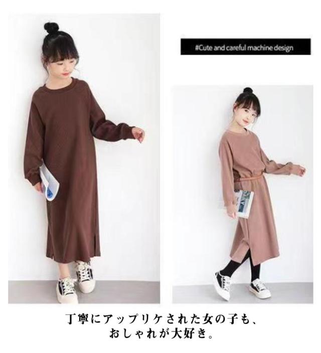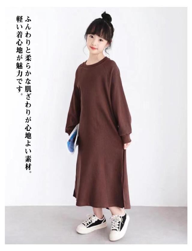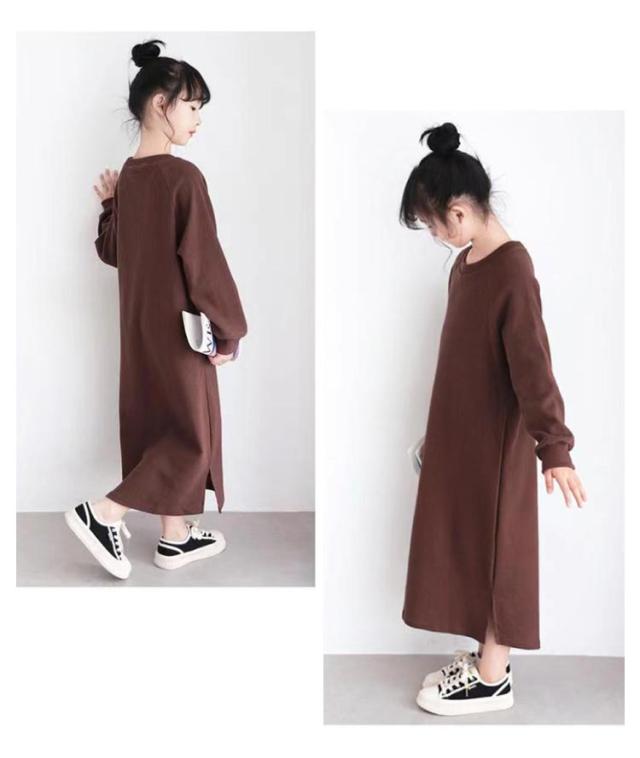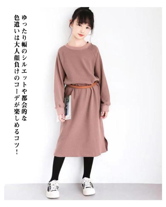 パーカーワンピース 長袖 女の子 Aライン フードなし 無地 ベルトなし キッズ 子供服 トレーナー ワンピース スウェットワンピース ロングワンピース 韓国子供服 子ども服 春 秋 冬 130 140 150 160 170 パーカーワンピ マキン丈 カジュアル 子供 ドレス 通園 通学 送料無料
