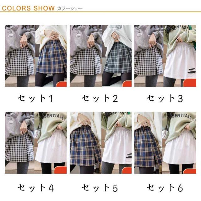 重ね着風 体型カバー 着け裾 付け裾 可愛い シャツ オシャレ インナー チェック柄 つけ裾 レイヤードバンド 腹巻き 腹巻 つけ裾 ママ 母親 2点セット 2点セット フェイクレイヤード 裾フリル レディース 大きいサイズ ママ Tシャツ スカート お洒落
