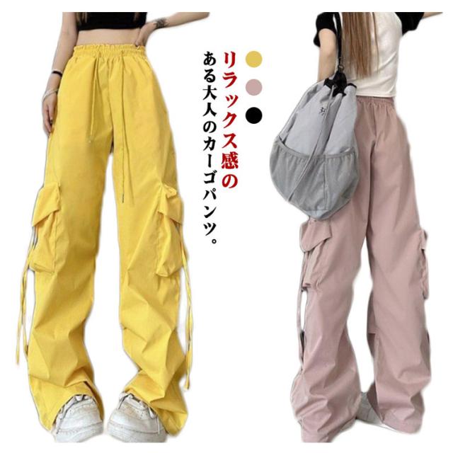 カーゴパンツ ワイド カジュアル 無地 カーゴパンツ レディース ズボン ボトムス ゆるめ カーゴ バギーパンツ ストレッチ ゆったり ルーズ かわいい シンプル ベイカーパンツ ワークパンツ 動きやすい 女性用 薄手 ナチュラル