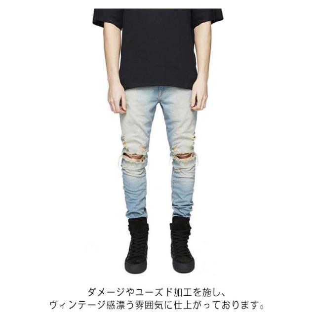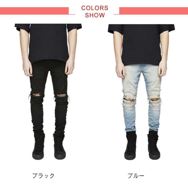 ストレッチ 脚長 ダメージジーンズ スキニーデニム スキニーパンツ 美脚 スキニーデニム メンズ デニムパンツ ダメージデニム ジーパン 大きいサイズ 春夏 秋冬