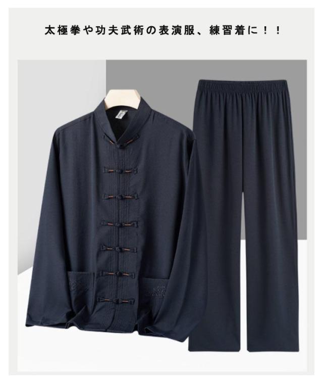 中華服 少林拳 武術 カンフー服 唐装 武術教室 上下セット 気功 表演服 演武服 団体 演出服 練習着 長袖 コスプレ 太極拳服 太極拳服 武僧服 功夫 中国 衣装 パーティ 少林寺 仮装 ハロウィン リラックス ルームウェア 普段着 空手