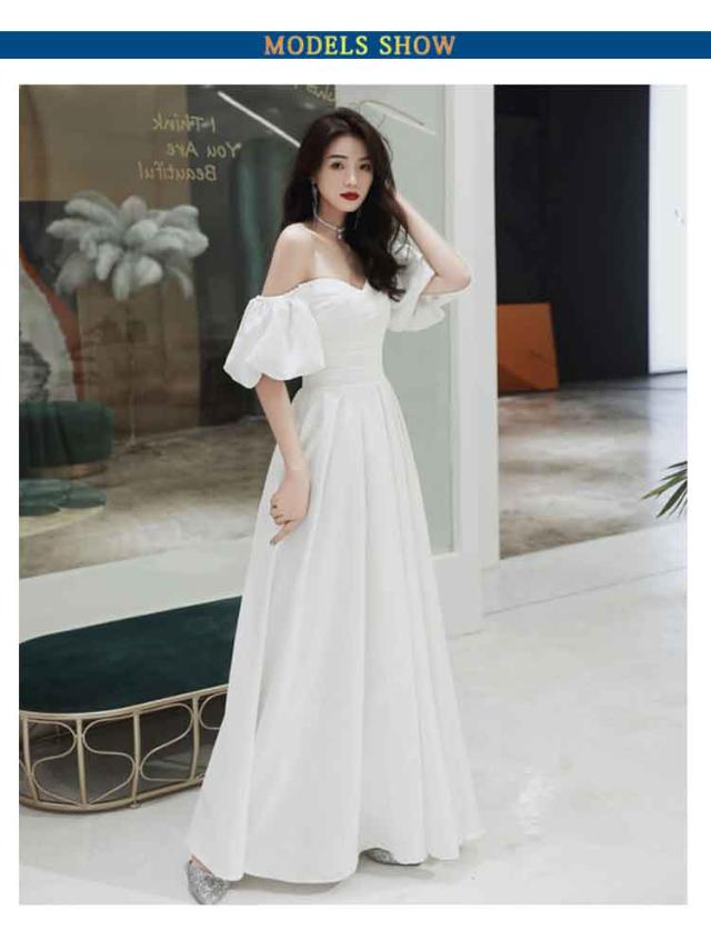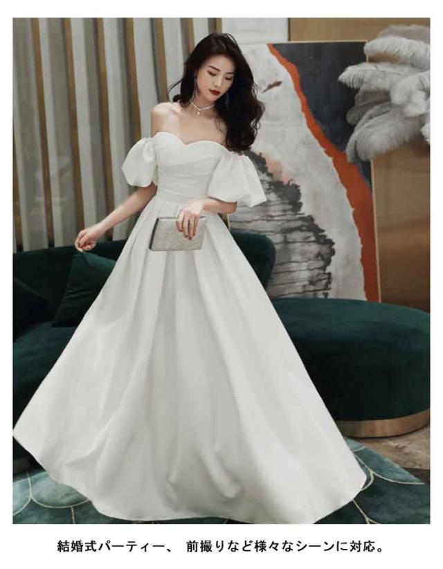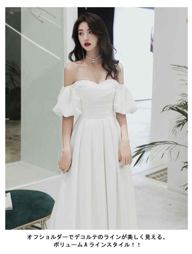 花嫁 きれいめ オフショルダー 白ドレス レディース ドレス 大きいサイズ 前撮り 大人 女性 結婚式 オフショルダー 二次会 フレアワンピース 礼服 ブライダル ロングドレス 演奏会 カラードレス 後撮り 大きいサイズ 可愛い