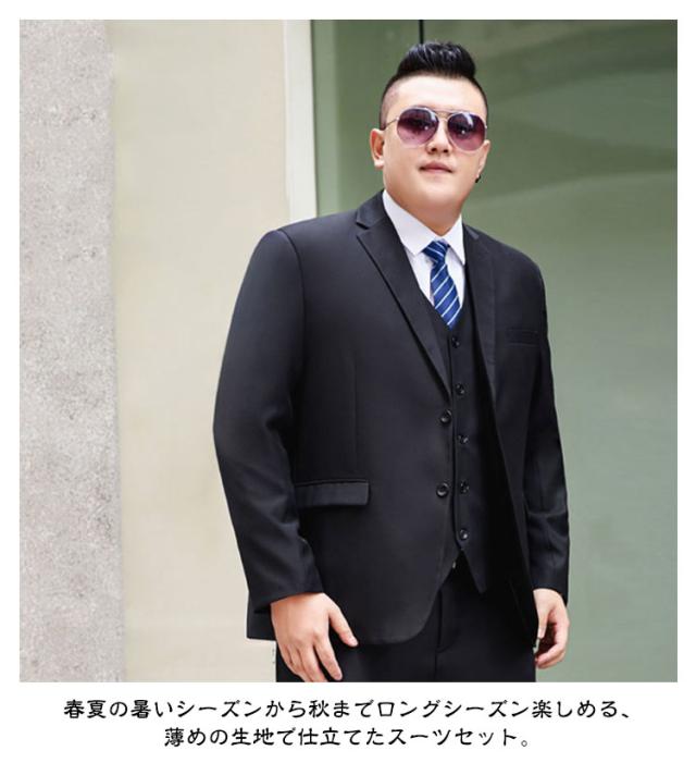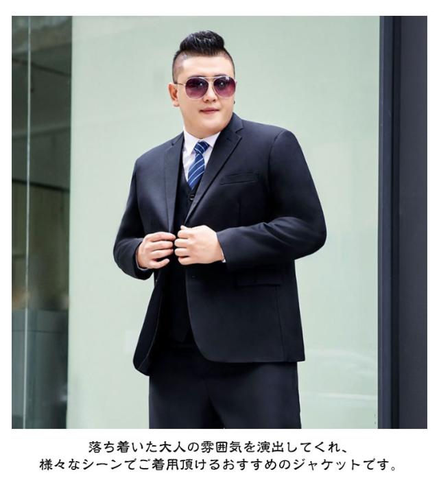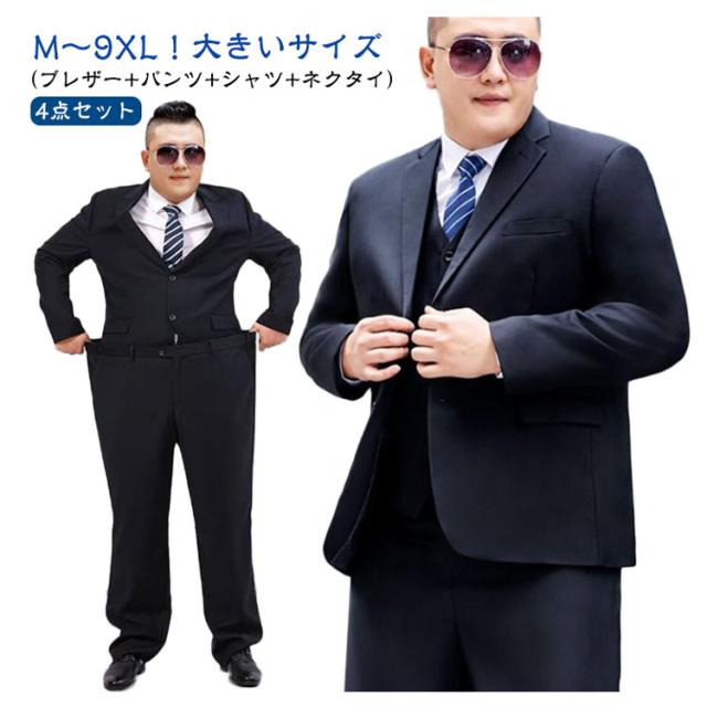 | M〜9XL! 大きいサイズ 4点セット(ブレザー+パンツ+シャツ+ネクタイ) 春夏の暑いシーズンから秋までロングシーズン楽しめる、薄めの生地で仕立てたスーツセット。 体に自然にフィットさせた美シルエットを実現、全体的な印象もスタイリッシュに魅せてくれます。 落ち着いた大人の雰囲気を演出してくれ、様々なシーンでご着用頂けるおすすめのジャケットです。 更に、より多くの人に着ていただきたくて、サイズバリエーションはジャストからオーバーまでM〜9XLのサイズをご用意しております。 | |