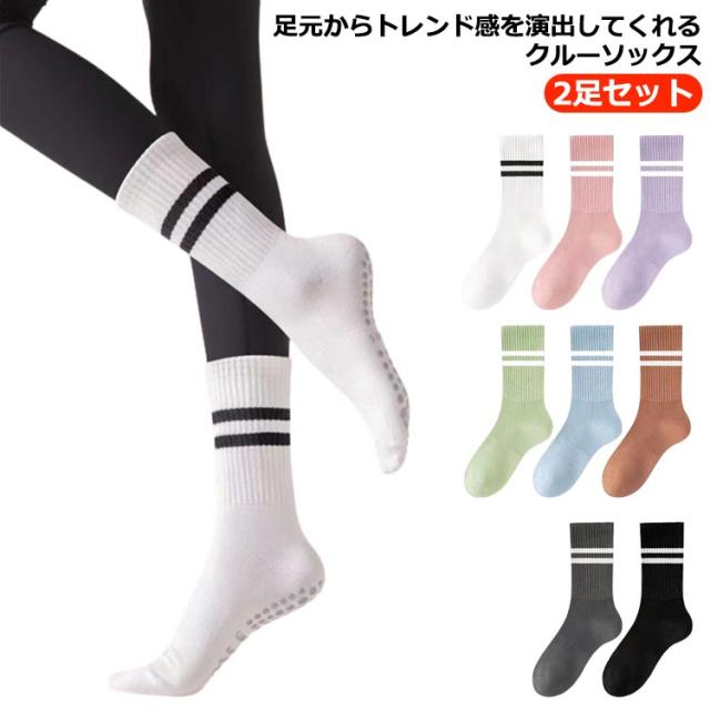 滑り止め 靴下 ピラティス ヨガ靴下 レディース くつした ヨガソックス ヨガくつ下 ダンス 送料無料 ヨガ靴下 クルーソックス 2足セット ヨガウェア ランニング ウォーキング テニス ミティアム丈 ジム YOGA 滑り止め ストレッチ 滑りにくい 滑り止め お洒落