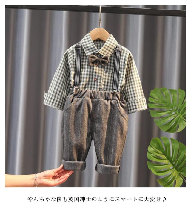 | 【上下セット】【80 90 100 110】【2COLORS】 お子様のお洒落さと機能を重視したデザインで、結婚式、入園式、 お祝いなどのフォーマルシーンはもちろん、発表会の衣装としても! やんちゃな僕も英国紳士のようにスマートに大変身♪ サイズ展開は赤ちゃんからお兄さんまで。 兄弟や、お友達とお揃いも素敵ですね♪ | |