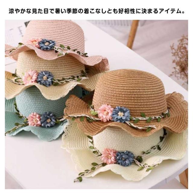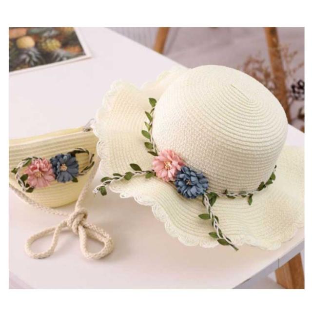 かごバッグ 女の子 紫外線対策 2点セット ハット キッズ ストローハット つば広 あご紐付 ペーパーハット ストローバッグ 帽子 夏 日除け uvカット 通気性 熱中症対策 遮光 日焼け防止 日除け帽子 春 花モチーフ 花柄 かわいい 麦わら帽子 56cm