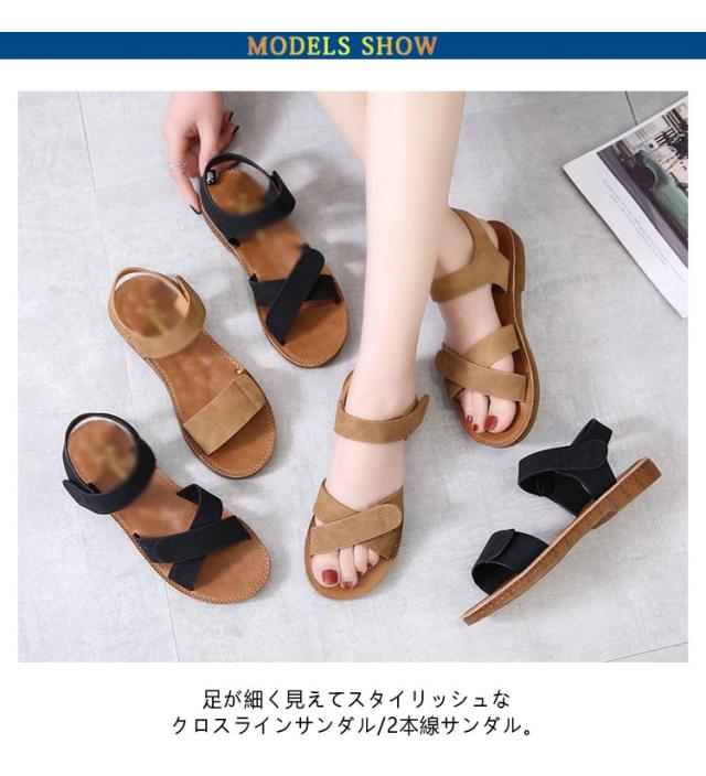 | 【22.5-25cm】【2TYPE×2colors】 足が細く見えてスタイリッシュなクロスラインサンダル/2本線サンダル。 あるきやすく、優しく足を包んでくれて履き心地も快適♪ ローヒールで疲れにくくお散歩など色んなシーンで大活躍♪ | |