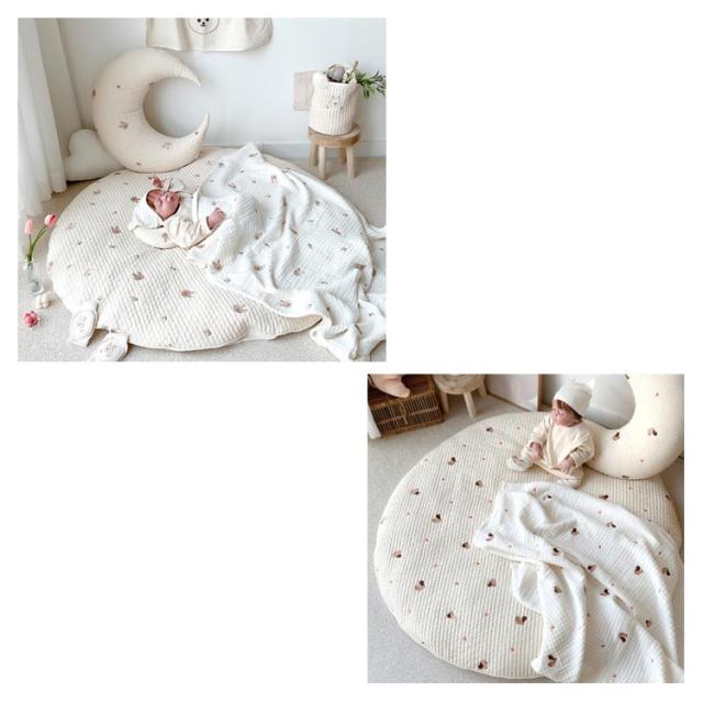 サニーマット 洗える よちよちマット 洗える 寝相アート フォト プレイマット ベビーマット 円形 月齢フォト 出産祝い 赤ちゃん ごろ寝アート お昼寝マット コットン 刺繍 マット プレゼント ギフト イブルマット