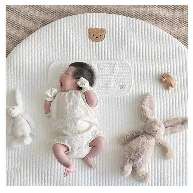 | ベビー サニーマット!フローリングに敷くだけでごろ寝スペースの出来上がり! 厚くて柔らかくて、赤ちゃんの夜寝用マットとしておすすめです。遊び用マレイマットにもできます。 また、お子様のお遊びマットとして、おむつ換えやごろ寝、ママのラグマットとしても使えます。 お子様の成長記録の記念撮影や話題の「寝相アート」の背景にもびったりのかわいいデザインのマットです。 | |