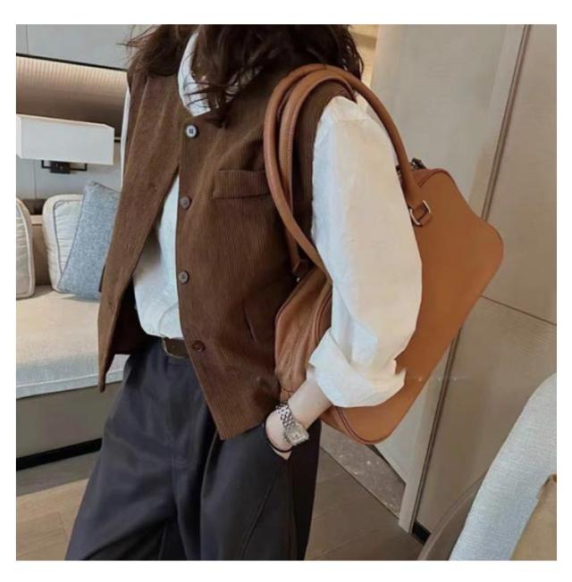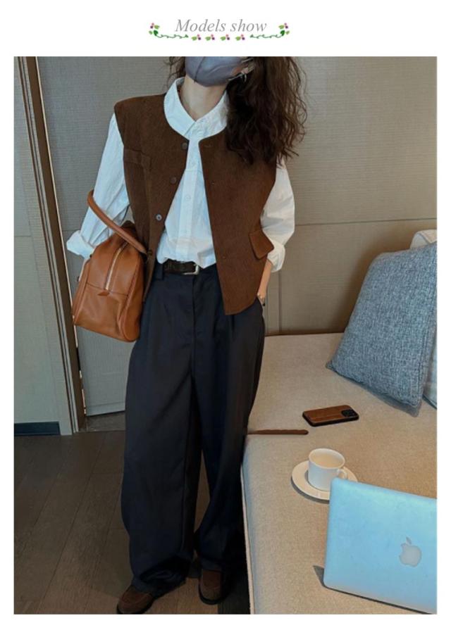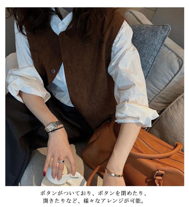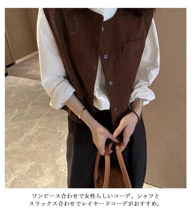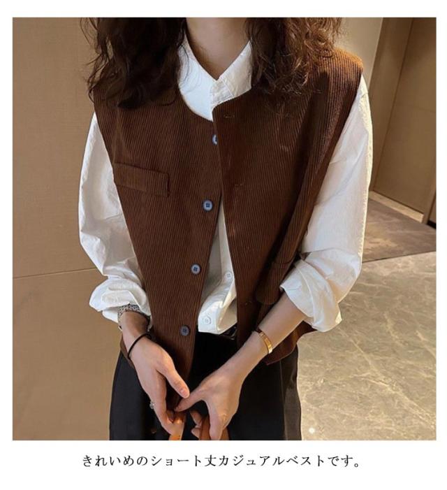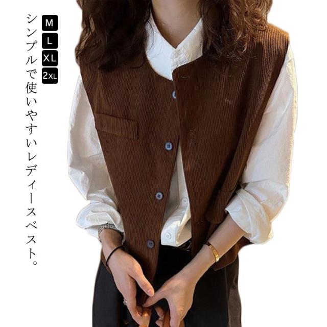カジュアル レディース 重ね着 トップス ボタン付き コーデユロイ シンプル ノースリーブ アウター コーデュロイベスト おしゃれ 前開き 羽織 春秋 無地 レイヤード ベスト 羽織り ショート丈 春 秋 冬 きれいめ 大きいサイズ ダークブラウン