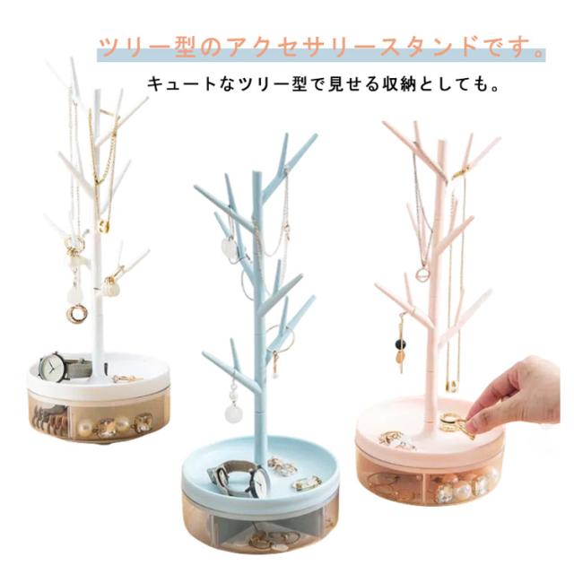 ネックレス収納 収納 机上 360度回転 小物入れ アクセサリー収納 収納スタンド ツリー ジュエリーケース アクセサリースタンド 卓上 掛ける ピアス収納 ブレスレット収納 リング収納 アクセサリーケース インテリア雑貨 ピンク ホワイト ブルー